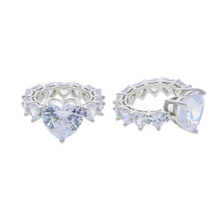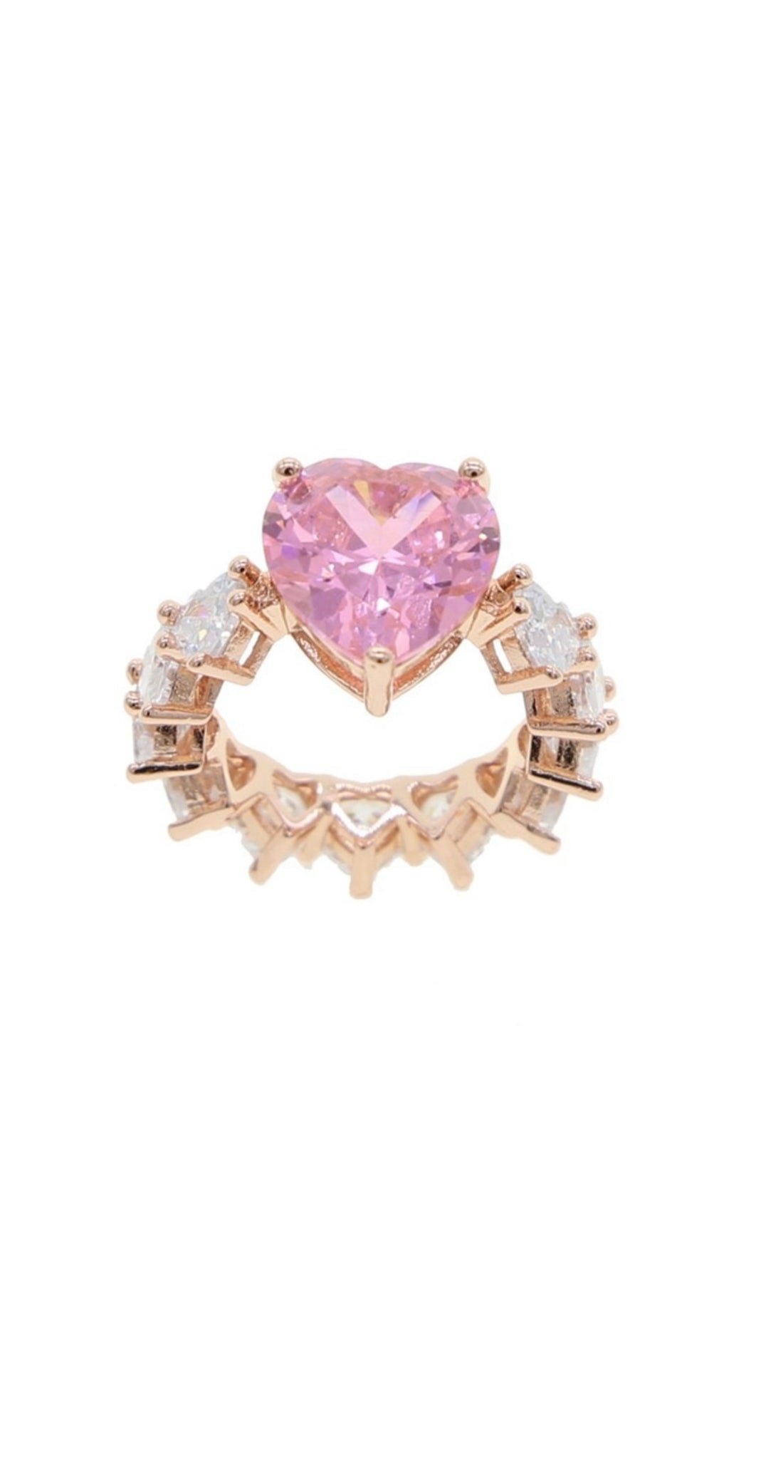 Treat yourself to this blinged-out cubic zirconia ring! This gorgeous ring features a sparkling heart-shaped cubic zirconia prong set in the center of this eternity ring, glistening with fire and brilliance. Perfect for those who love extra sparkle! Glittering cubic zirconias are set in rich metal with a high shine finish, giving this luxury fashion ring an incredible style that is sure to make a statement!