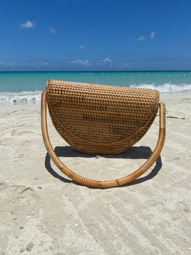 Nastassia - Woven Straw Crescent Bag w/ Curved Single Shoulder Strap